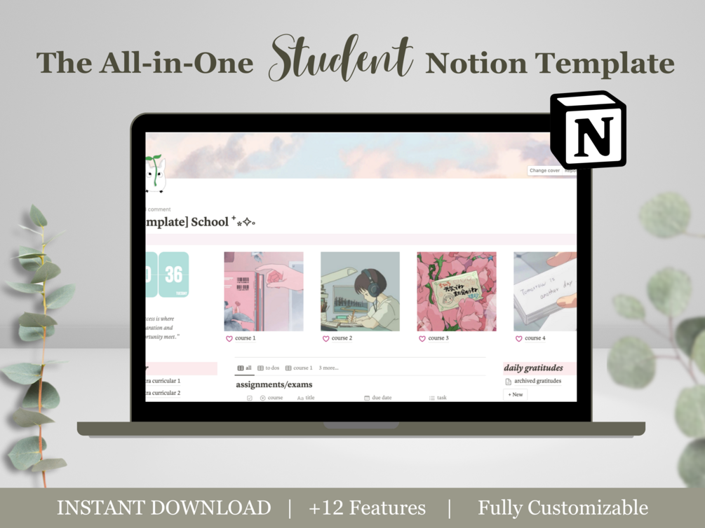 All-in-One Student Notion Template | Assignments/Exam Tracker | Management List | Lecture Notes Layout | Productivity Tool