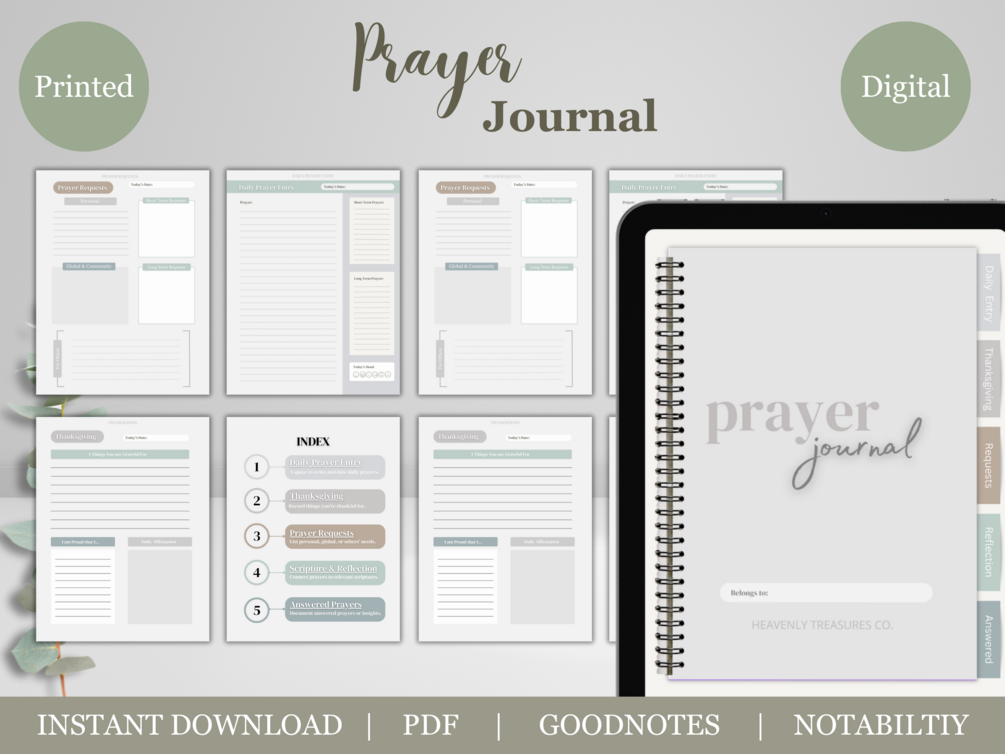 The Prayer Journal | Digital Ringed Journal |Gratitude Diary | Prayer Requests