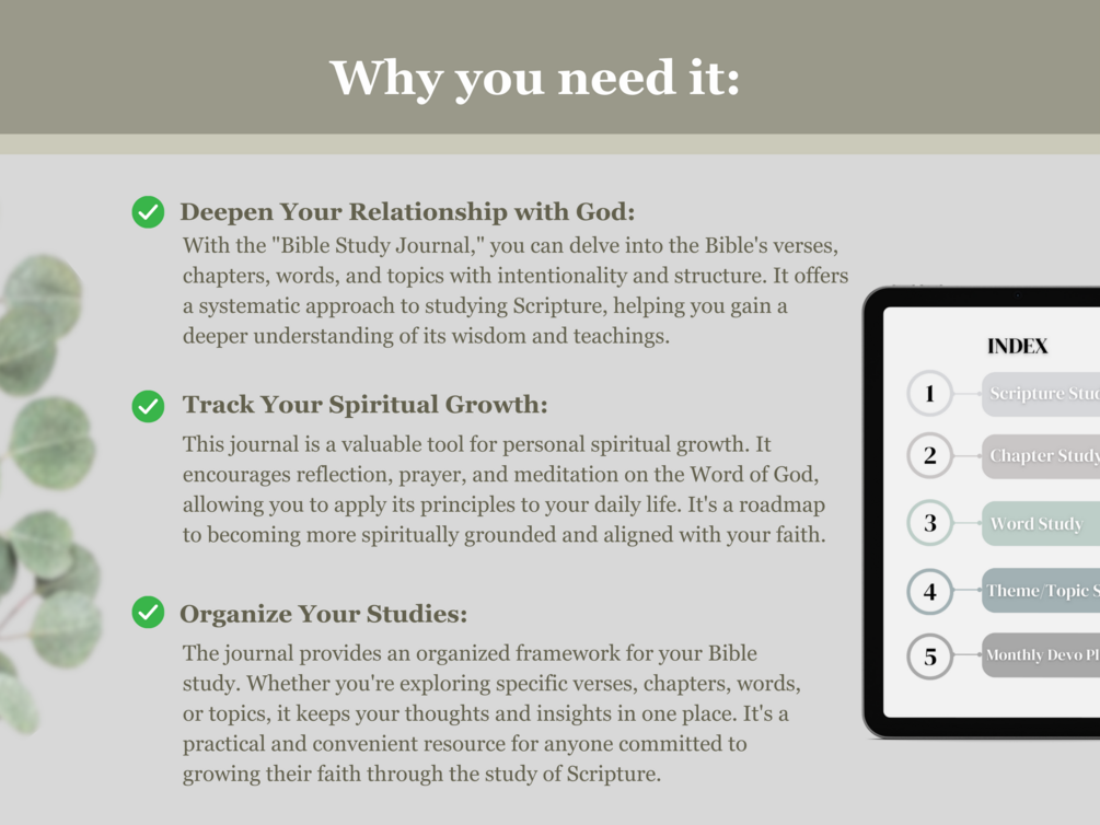 With this Bible Study Journal, you can deepen your connection with the Scriptures, gain profound insights, and nurture your faith in an engaging and organized way. πΏ