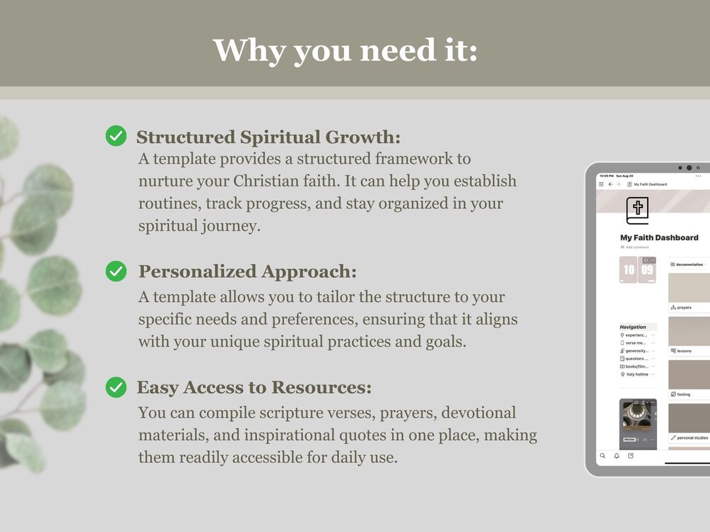 🌠 This comprehensive template is more than just organized sections – it's a gateway to transformation. Experience the joy of spiritual growth, connect with your faith on a profound level, and savor the beauty of a closer walk with God. Your journey towards a richer, more vibrant relationship with the divine starts here!